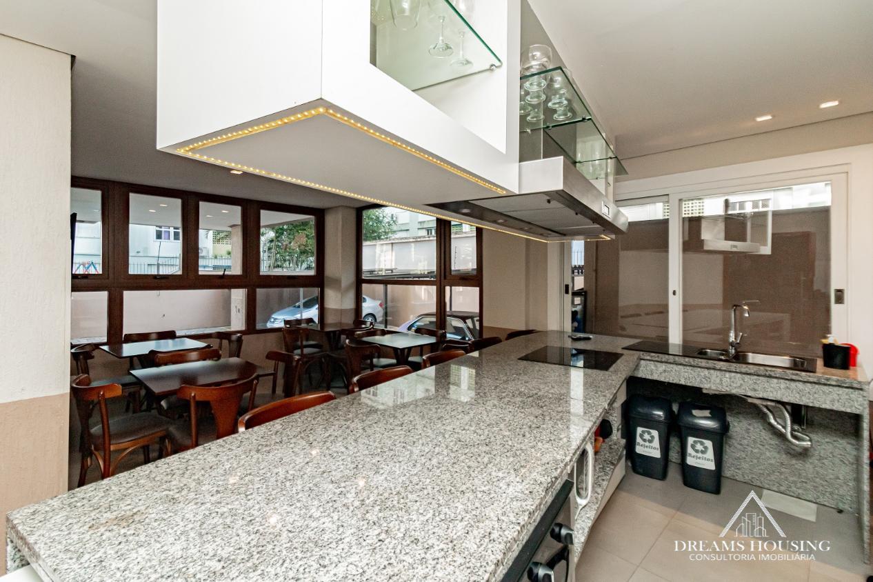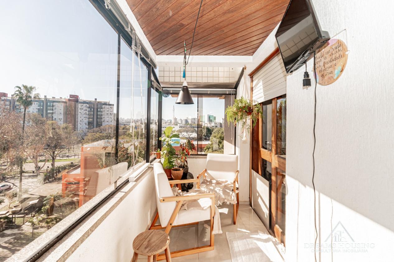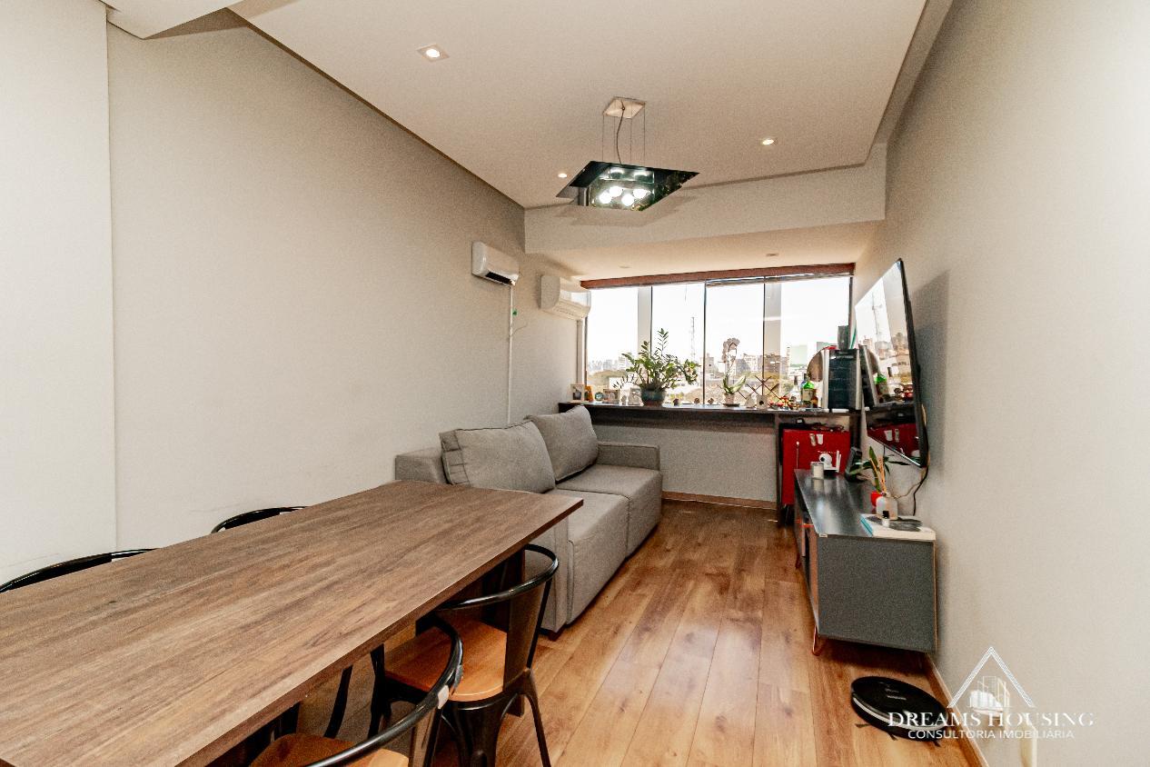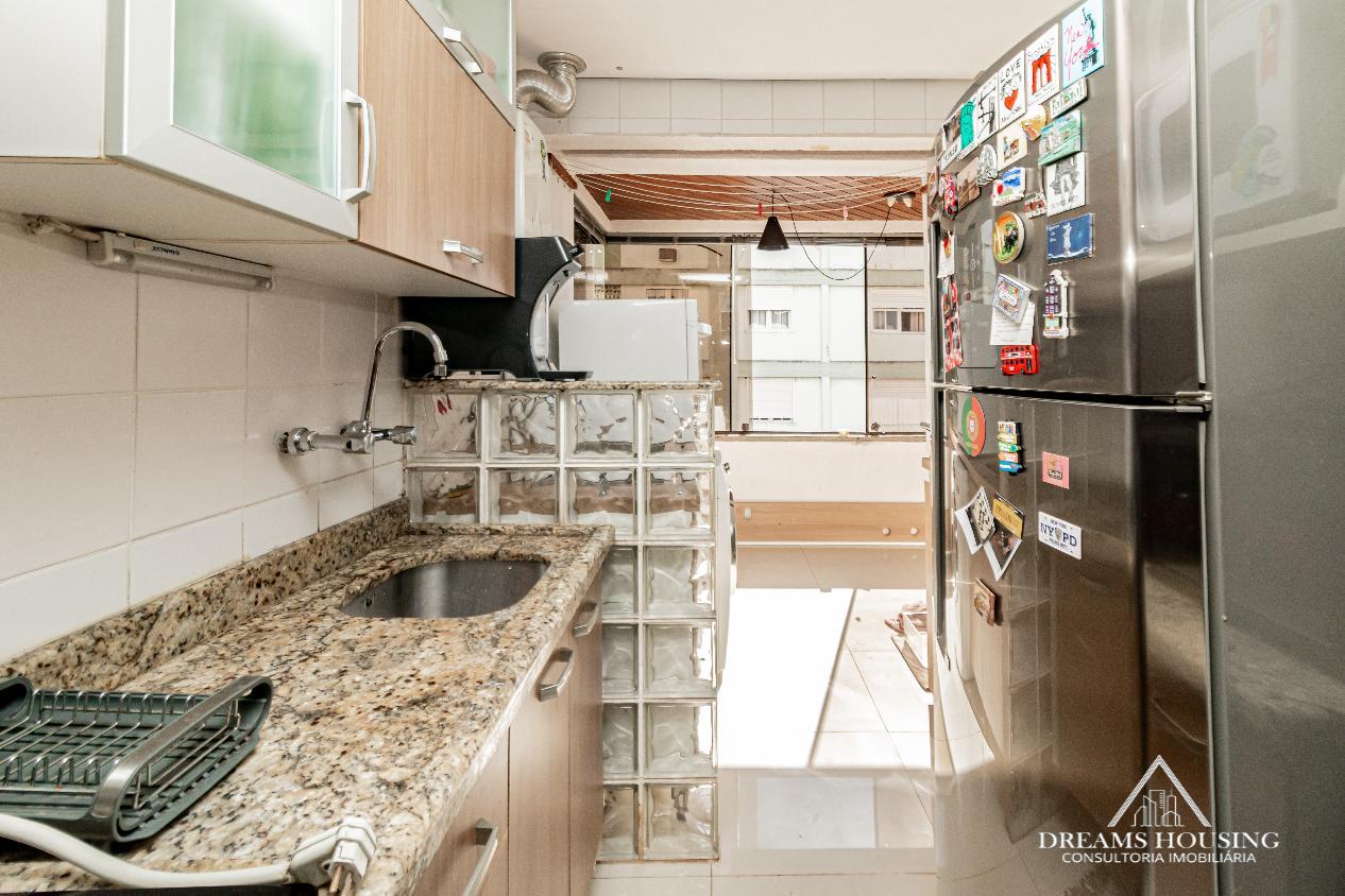 Dreams Housing Vende: Excelente apartamento com 2 dormitórios, living para 2 ambientes, com sacada integrada no living e um dos dormitórios, sacada muito ampla transformada em área gourmet, banho social, cozinha e área de serviço conjugada, água quente, com sol da manhã, bem ensolarado e ventilado, com vista definida e 1 vaga de garagem escriturada e coberta. Prédio de esquina, com gás central, salão de festas, bicicletário, portaria 24 horas, baixo custo condominial, junto a todos os recursos do bairro. Agende sua visita e surpreenda-se!