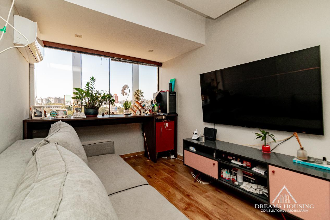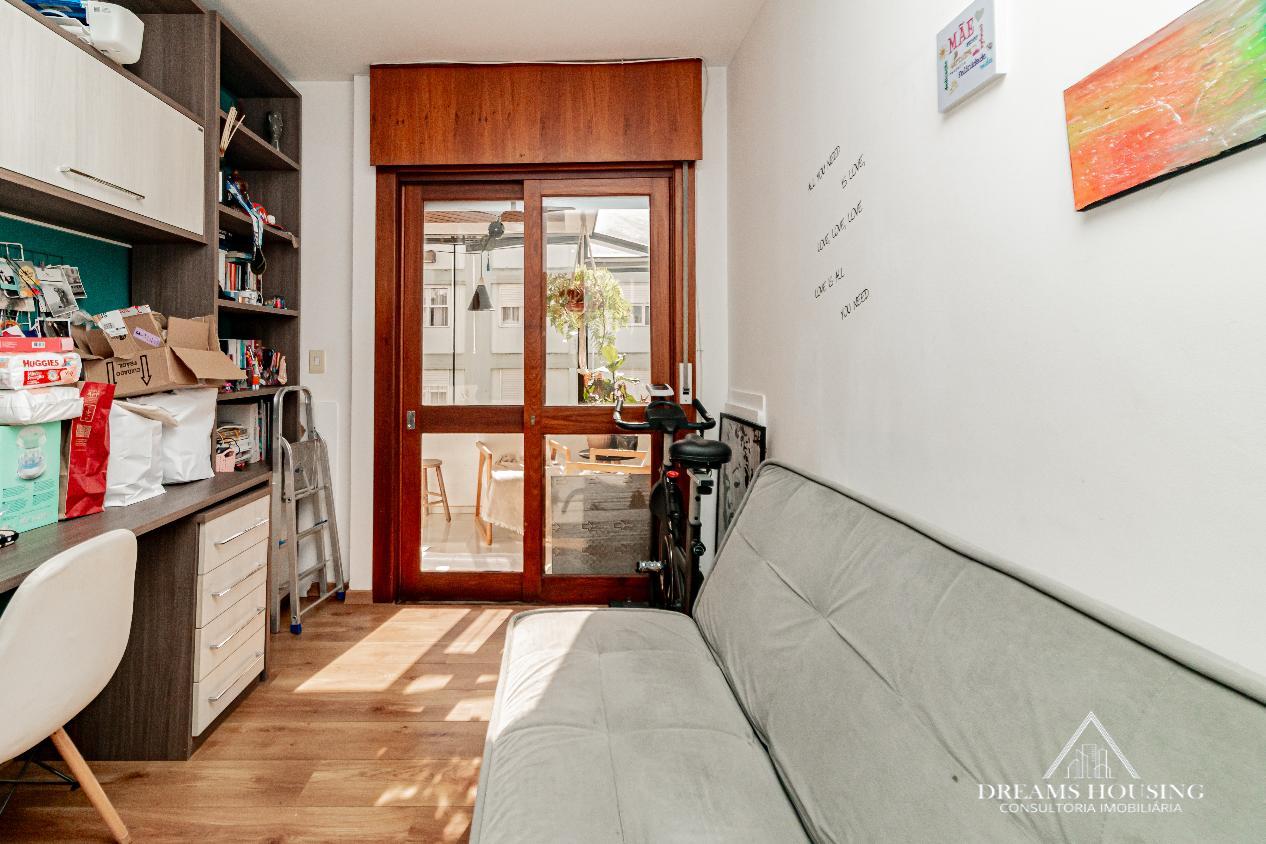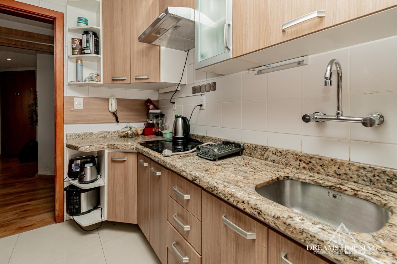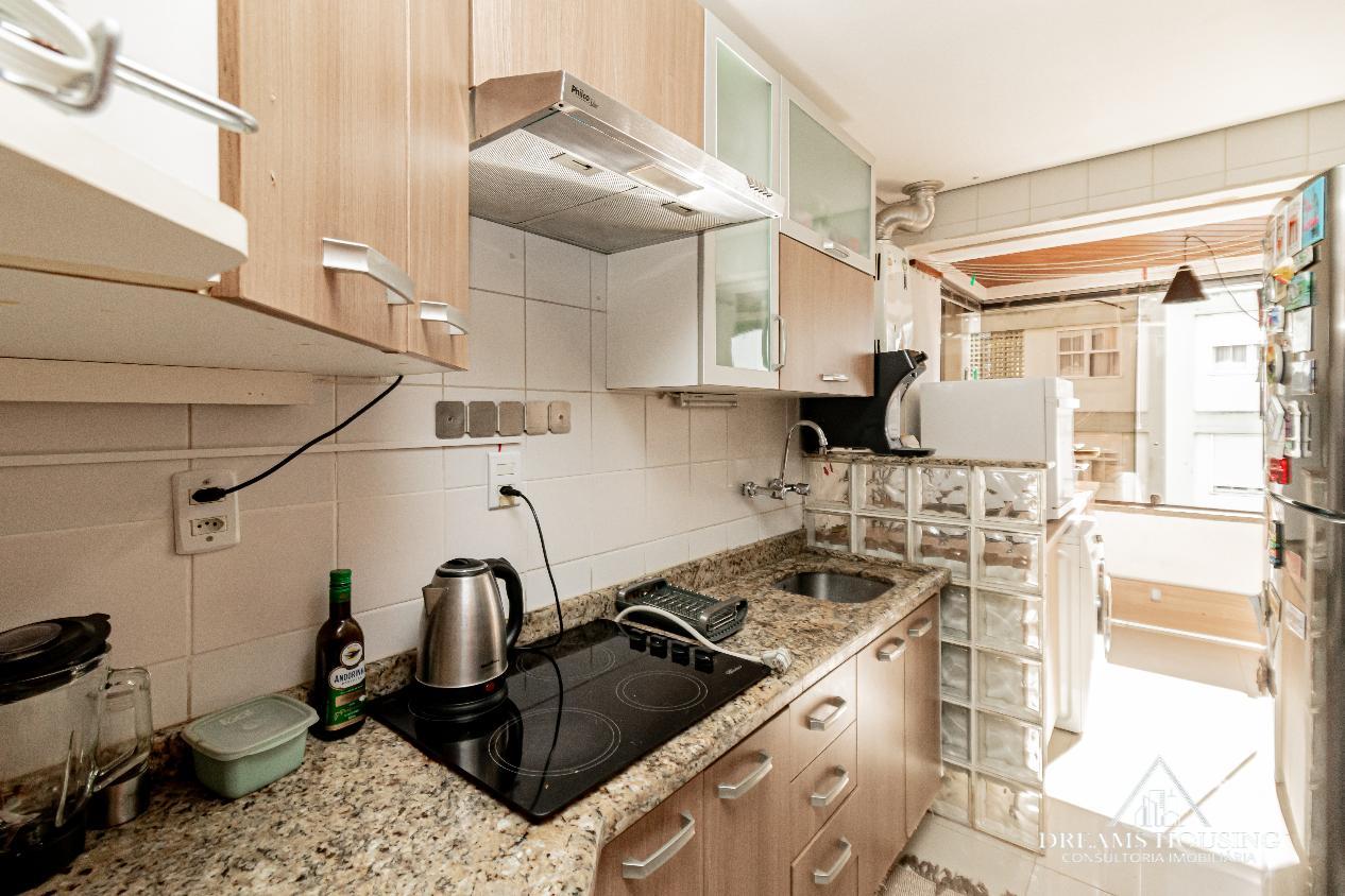 Dreams Housing Vende: Excelente apartamento com 2 dormitórios, living para 2 ambientes, com sacada integrada no living e um dos dormitórios, sacada muito ampla transformada em área gourmet, banho social, cozinha e área de serviço conjugada, água quente, com sol da manhã, bem ensolarado e ventilado, com vista definida e 1 vaga de garagem escriturada e coberta. Prédio de esquina, com gás central, salão de festas, bicicletário, portaria 24 horas, baixo custo condominial, junto a todos os recursos do bairro. Agende sua visita e surpreenda-se!