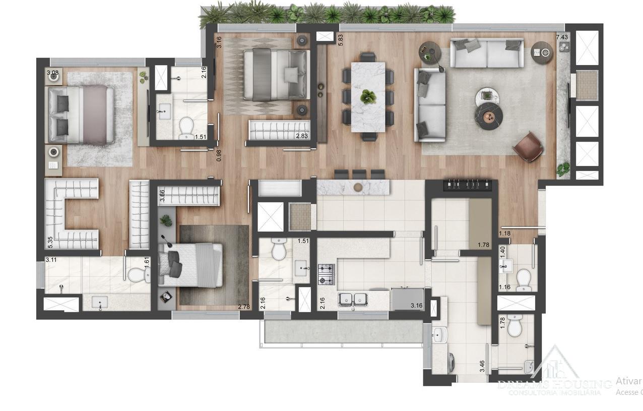 Dreams Housing vende: Excelente apartamento com 143m² de área privativa, 3 suítes, sendo 01 suíte máster com espaço para closet, acesso social privativo, amplo living integrado à sala de jantar e com lareira e churrasqueira, adega, cozinha com despensa e área de serviços separada, banheiro auxiliar e lavabo e 2 vagas. Imóvel com excelente ventilação e iluminação natural Condomínio com uma infraestrutura de lazer completa: piscina externa, piscina interna aquecida com raia olímpica, sauna, academia moderna, quadra de tênis de saibro, cancha de vôlei, espaço gourmet, rooftop com bar, sala de jogos, playground kids e aqua play. Um verdadeiro resort urbano, projetado para quem busca exclusividade, conforto e qualidade de vida. Pronto! Agende sua visita e surpreenda-se!
