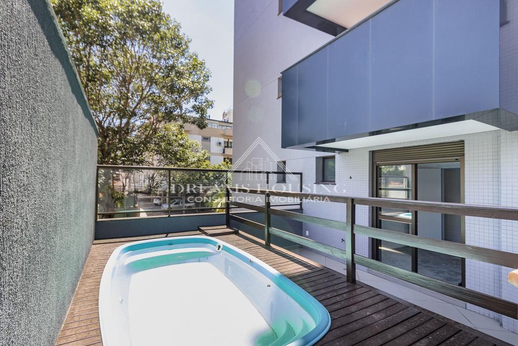 Dreams Housing Vende: Apartamento Garden com 169,23m² de área privativa, com 03 dormitórios, sendo 01 suíte, todos com persianas motorizadas, living para 03 ou 04 ambientes, churrasqueira, lavabo, cozinha e área de serviço; 04 vagas de garagem. Unidade de frente, muito ensolarado. Possui pátio lateral com deck e piscina já instalados. O tamanho do living é diferenciado neste apartamento. Prédio sem infraestrutura, portanto, com baixo custo condominial. Agende sua visita hoje mesmo e conheça seu novo lar!